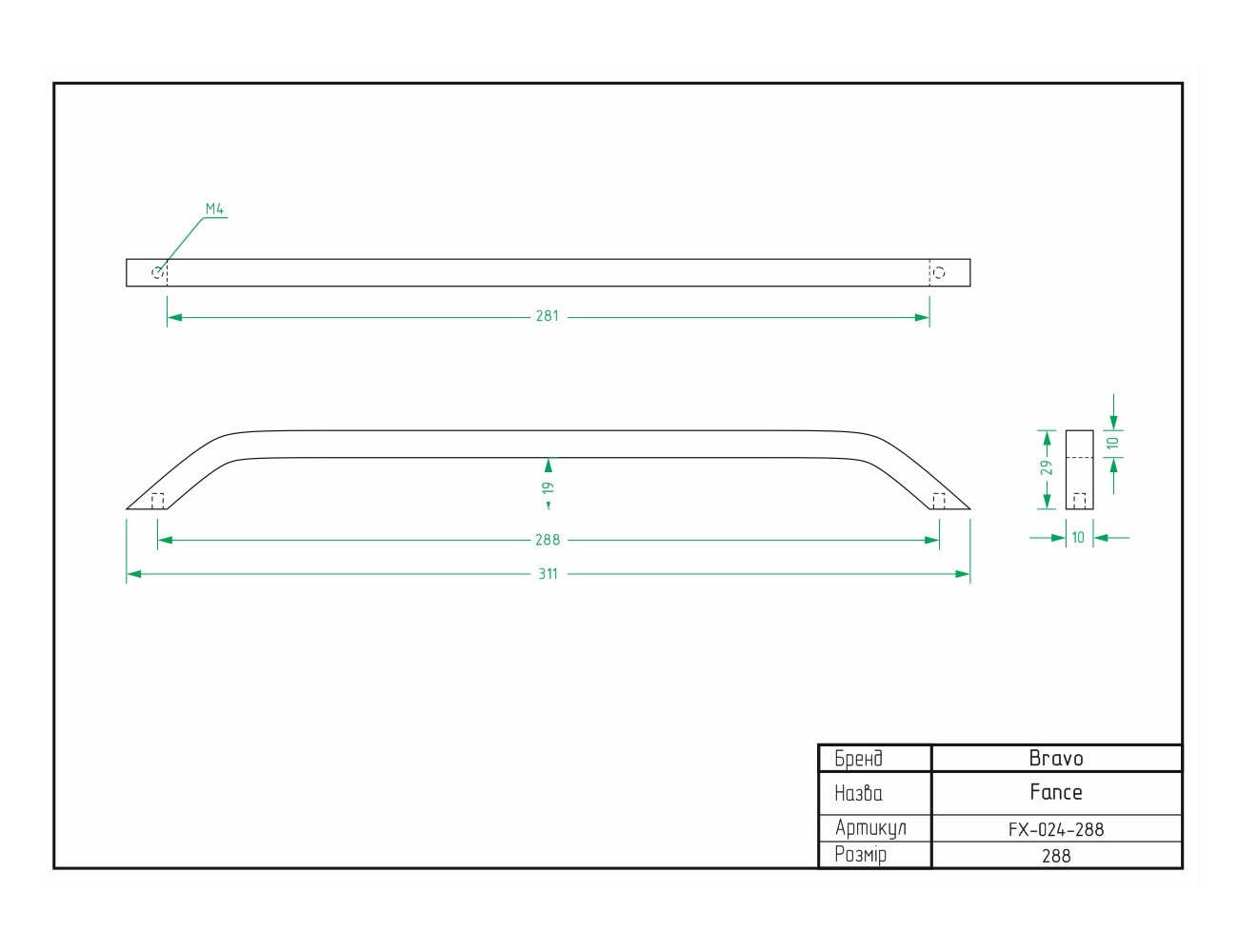 Ручка Bravo Fence 288 мм матовий нікель