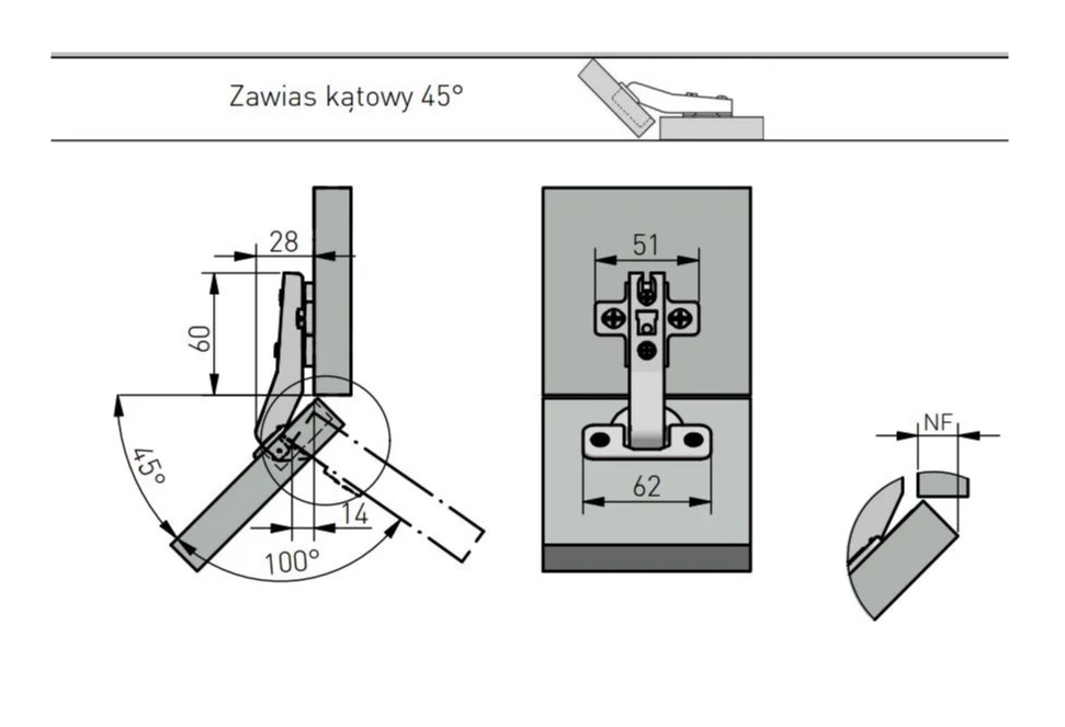 Завіс 45* GTV без пружини з єврошурупом