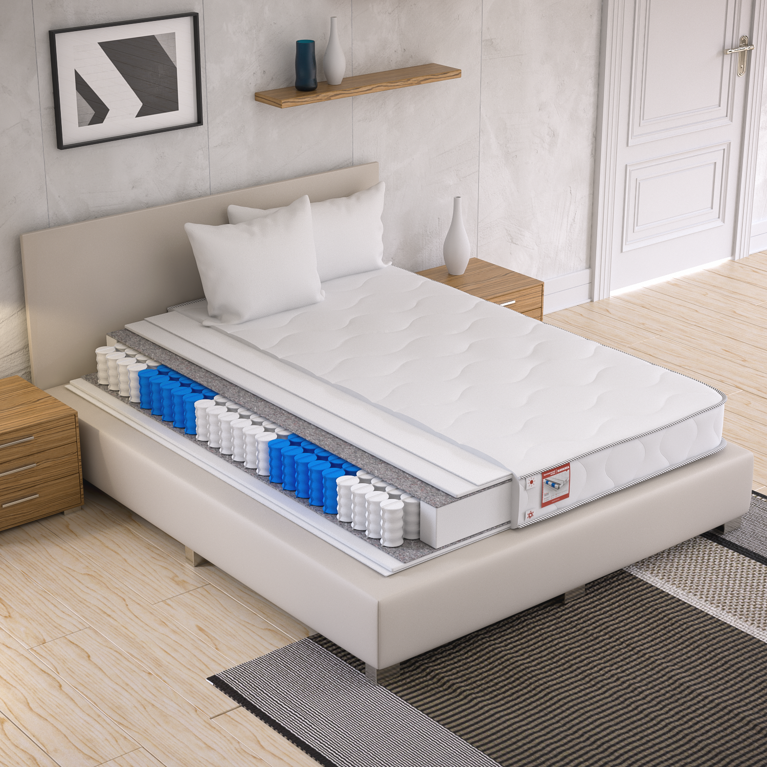 Матрац середньої жорсткості, з ортопедичною піною на блоці незалежних пружин. Це означає, що дана модель забезпечить анатомічно правильне положення тіла.В якості наповнювача для цього матраца використовується піна Ortho-Schaum. Вона має пористу структуру, внаслідок цього під час сну досягається активна циркуляція повітря.