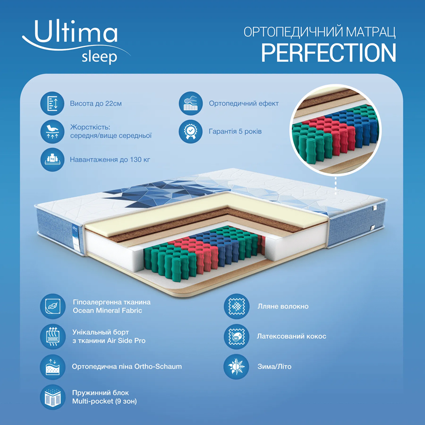 В цьому матраці використовується новітня система розташування пружин різної жорсткості. Завдяки розподілу по зонах забезпечується надійна підтримка всього тіла і кращі ортопедичні властивості, які дають можливість м'язам максимально розслабитися і забезпечують здоровий сон.